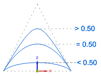 定义要创建的曲线的形状。二次曲线的 Rho 值需要在 0.05(含)和 0.95 之间(含)。放置或编辑曲线时,可以更改除抛物线外的任何曲线的默认值。