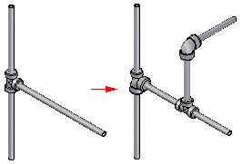 您可以在现有的管道组合中包括其他接头和管道,方法是绘制与现有几何体连接的其他管段。