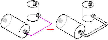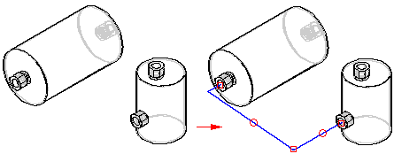 使用快速布管命令可为管件或管道创建 3D 路径,而不必手工绘制路径的各个线条。“快速布管”在两个点之间生成一条路径,该路径与默认参考平面正交。这些点必须是圆形或椭圆形元素、段的端点或草图元素的端点。