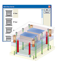 使用 创物3D 模具设计应用程序创建塑料模具基本部件并将模具设计过程记录为标准。模具设计应用程序需要使用有效的模具设计许可证。