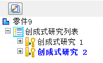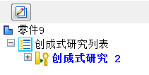 复制研究创建后,在创成式设计停靠窗格中列出为创成式研究 N,其中 N 是研究编号的下一个增量。 |