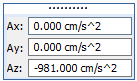 如果零件的定向导致沿 X 轴施加重力,则在 Ax 框而不是 Az 框中输入重力值。如果零件的定向导致与基本坐标系成一定 XY 角度施加重力,则在 Ax 和 Ay 框中输入重力值来定义该角度。