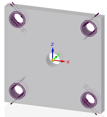 注释:注意零件上力方向符号的差异。右上孔和左下孔使用垂直于面选项创建,而作用于左上孔和右下孔的力使用沿矢量选项创建。
