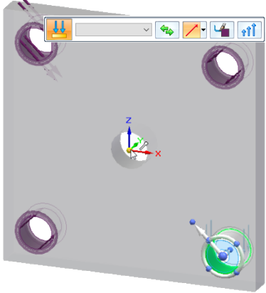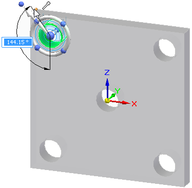 单击并拖动方向盘原点旋钮,使主轴在面上的方向如下所示。