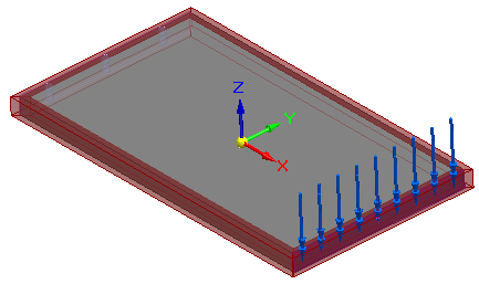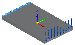 -Z 方向的 XYY 分量力载荷施加于不会固定的端面。固定约束施加于支撑另一端的面,该面固定在台面框架上。