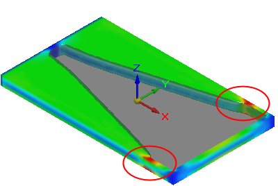 如果网格体上的应力结果表示已移除太多材料的区域,则可以更改现有载荷、约束或偏置空间体的值。