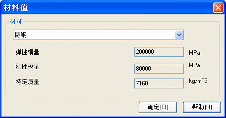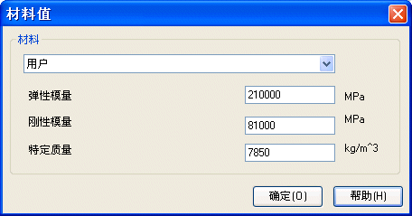 通过材料选择控件选择材料即可。弹性模量、刚性模量和比质量的值将根据材料自动进行显示,这些值都存储在数据库中。请记住,使用 SEER 标准材料时不可更改这些值。