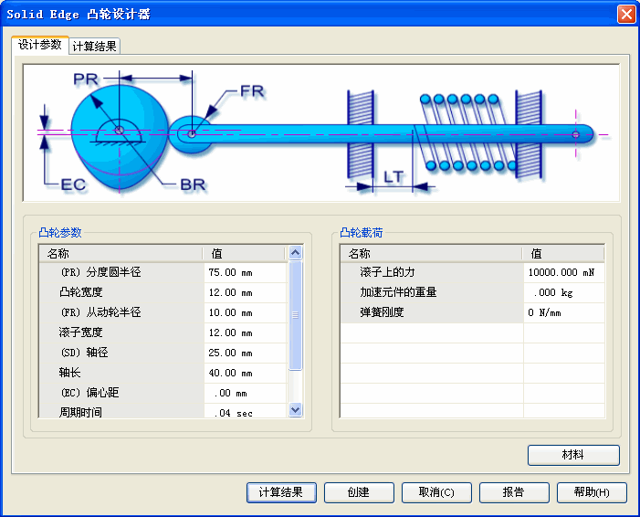 使用“材料”按钮可选择凸轮的材料。