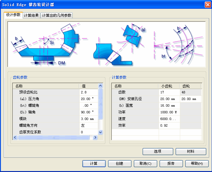 锥齿轮设计参数选项卡