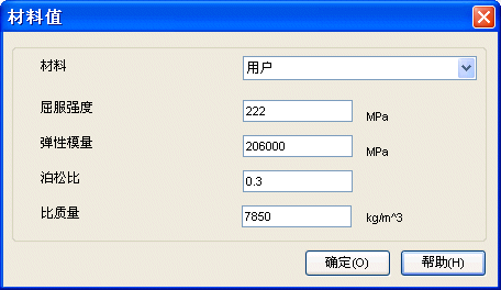 此时屈服强度、弹性模量、泊松比和比质量的输入字段将变为启用状态,您可以输入自己的值。