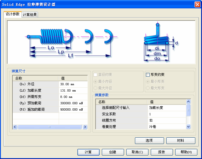 拉伸弹簧设计参数选项卡