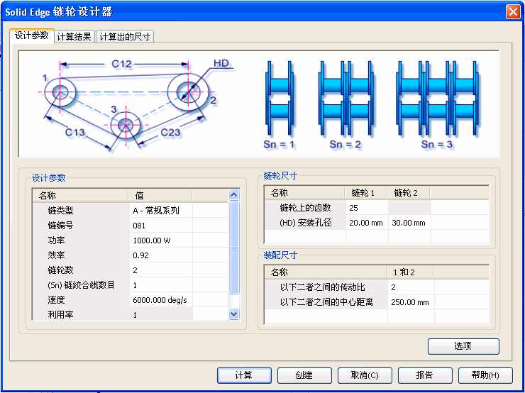 链轮设计参数选项卡